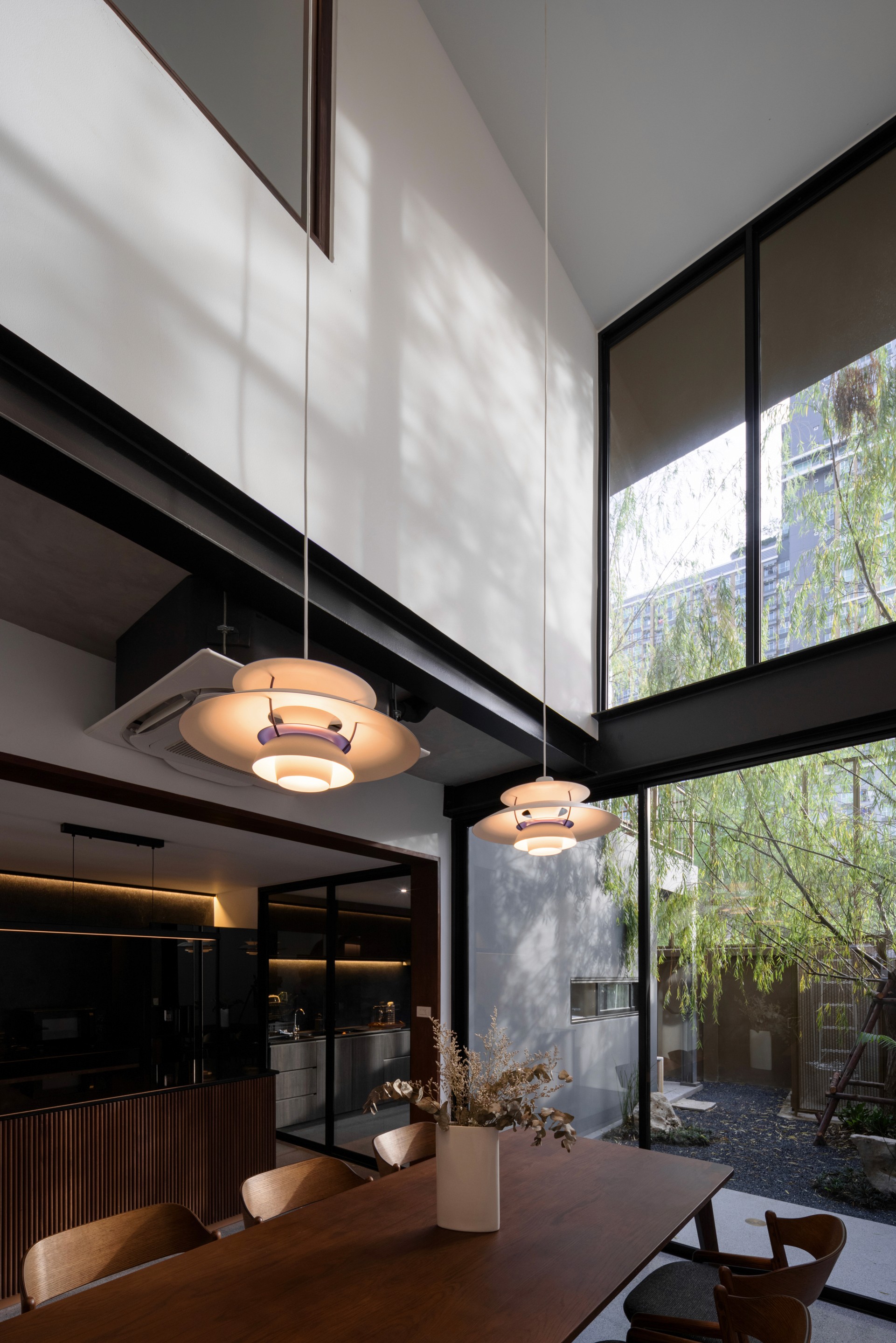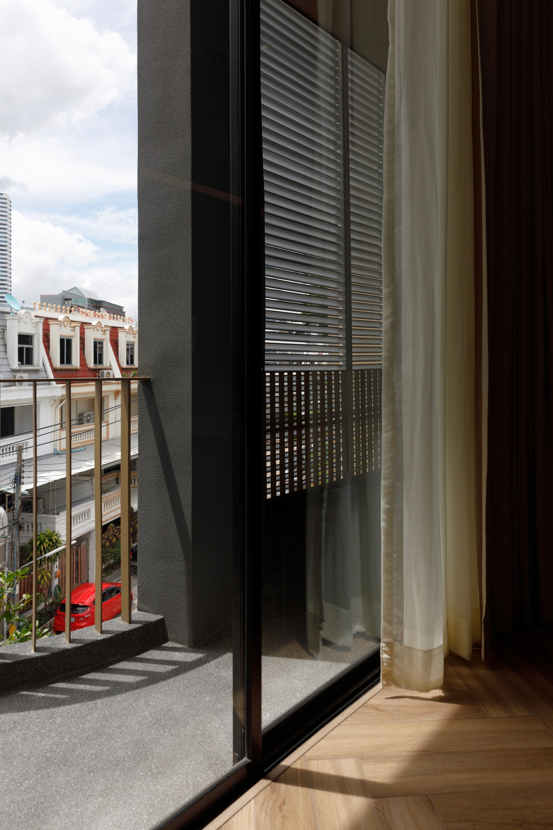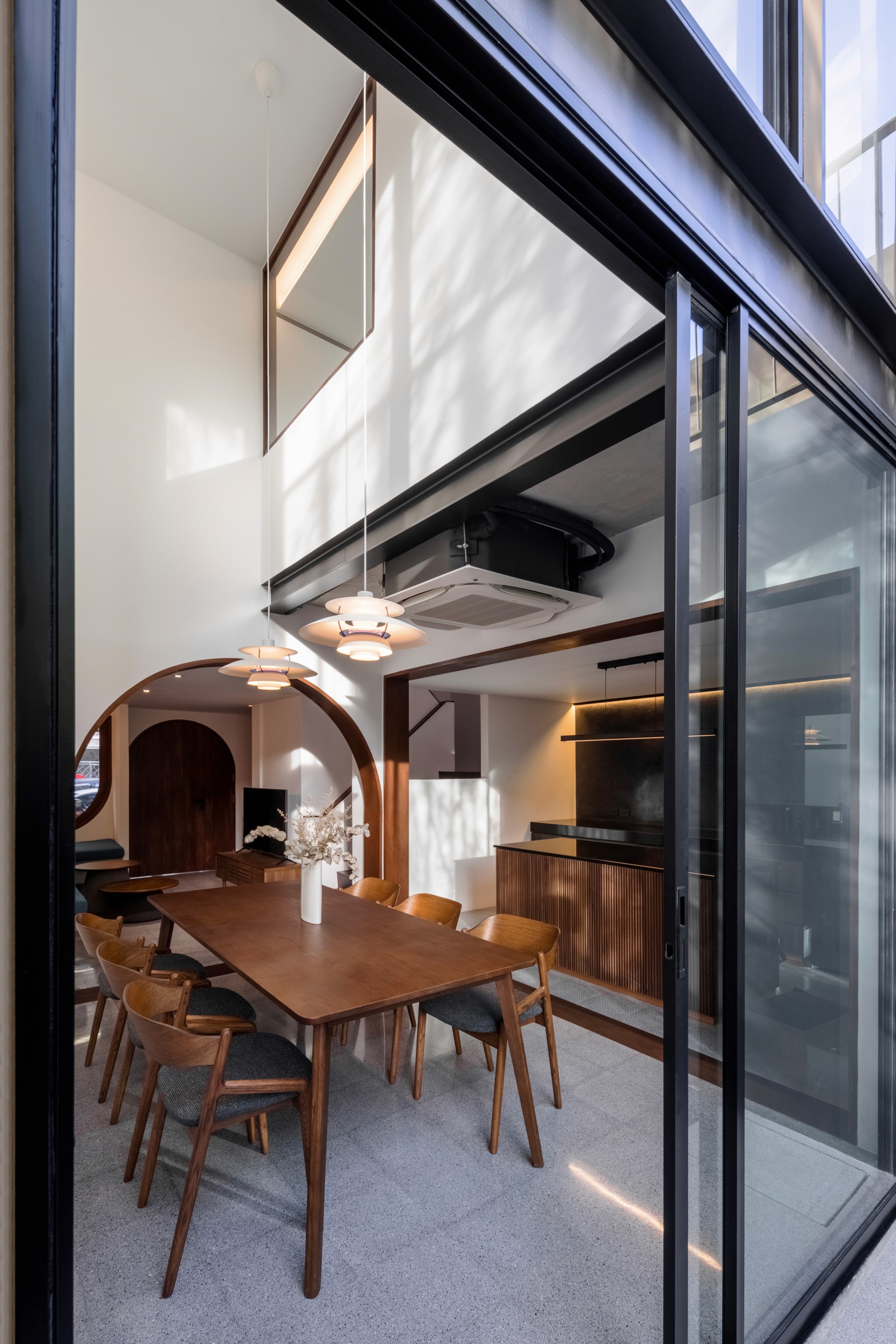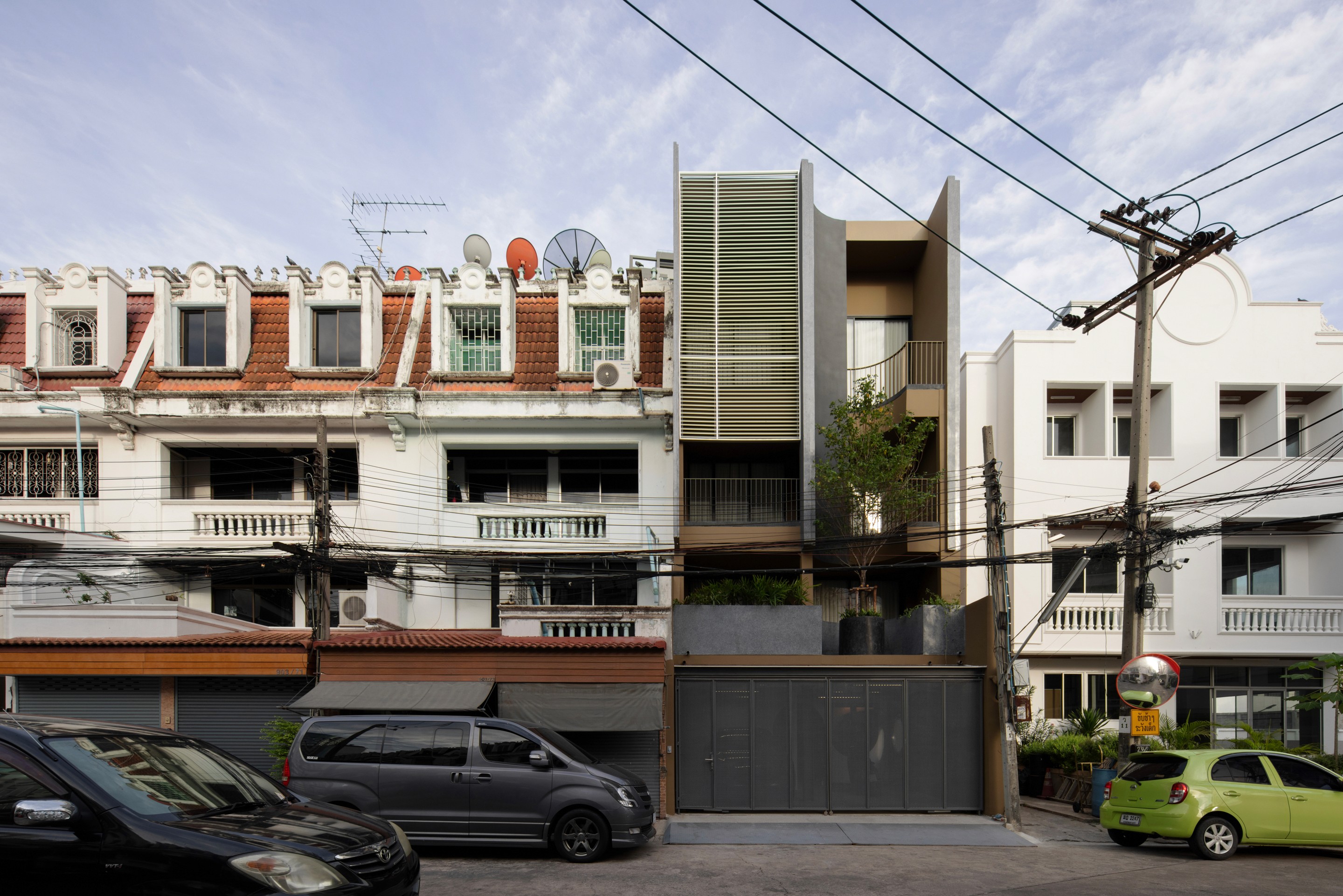 The existing building is a 120 square meters town house situated in an old village project. The context are rolls of townhouses facing each other with a small park-like space in the middle being utilized as parking space and exercise ground.