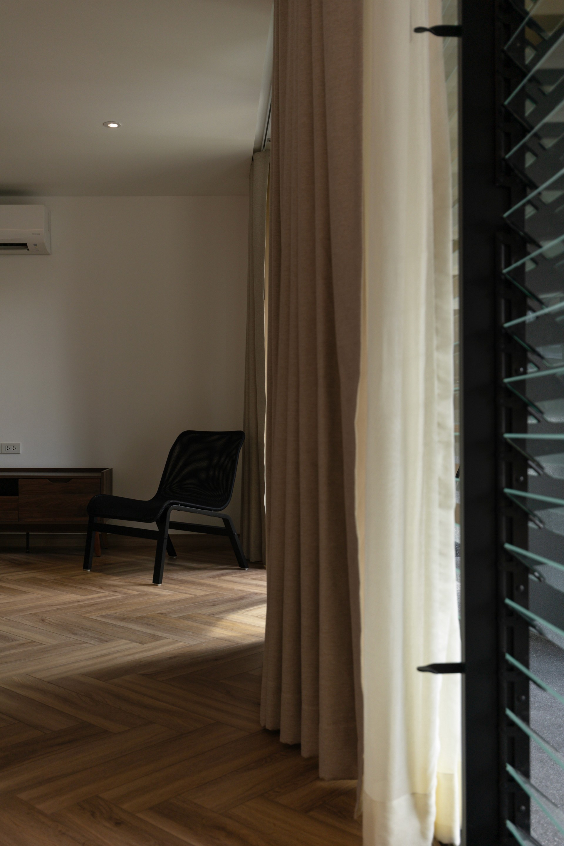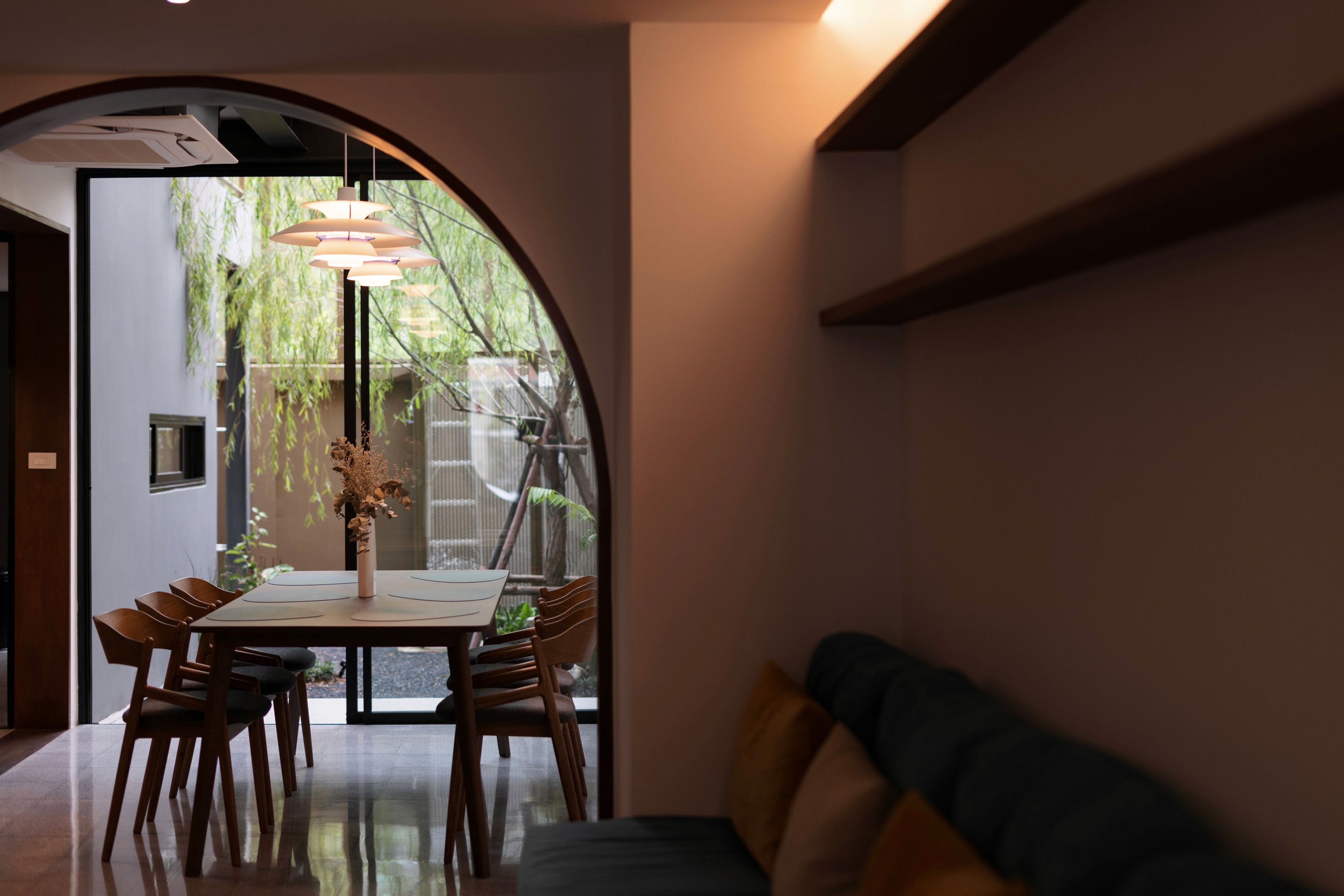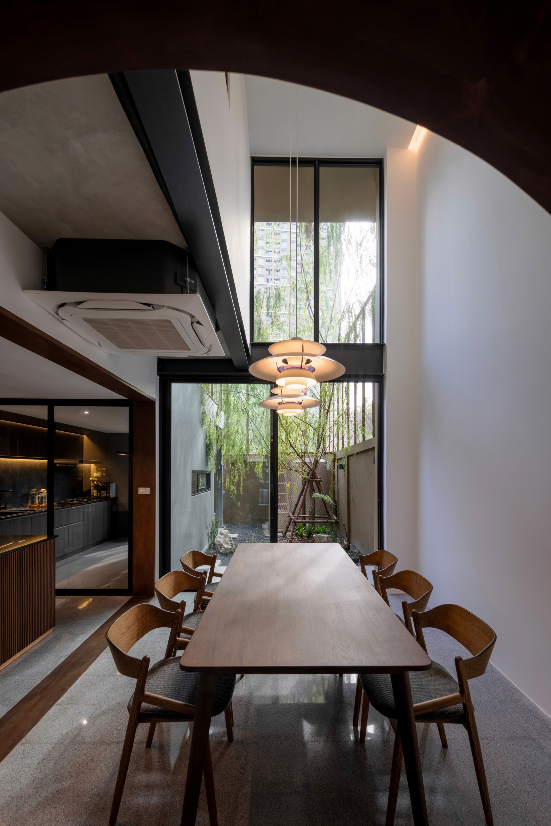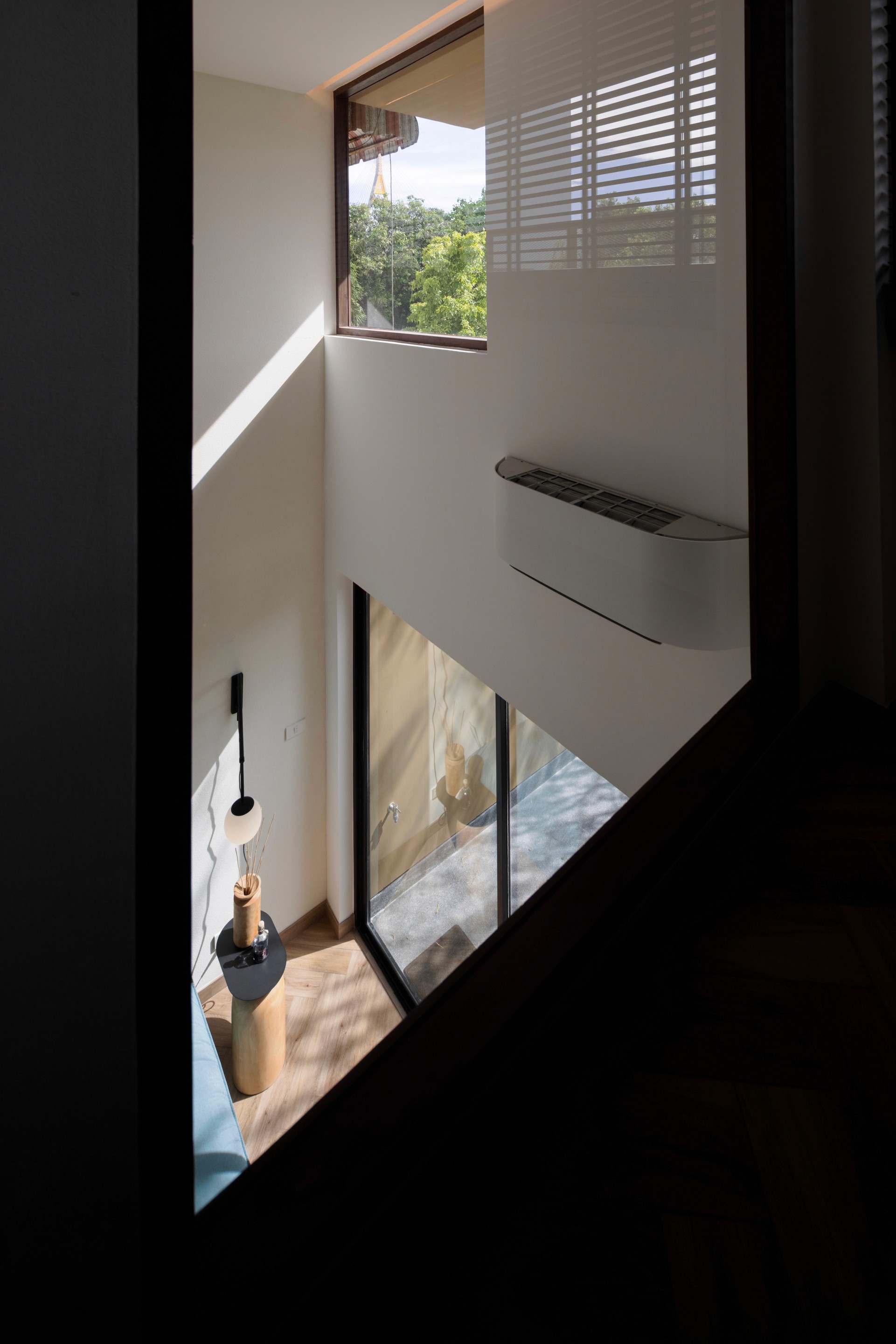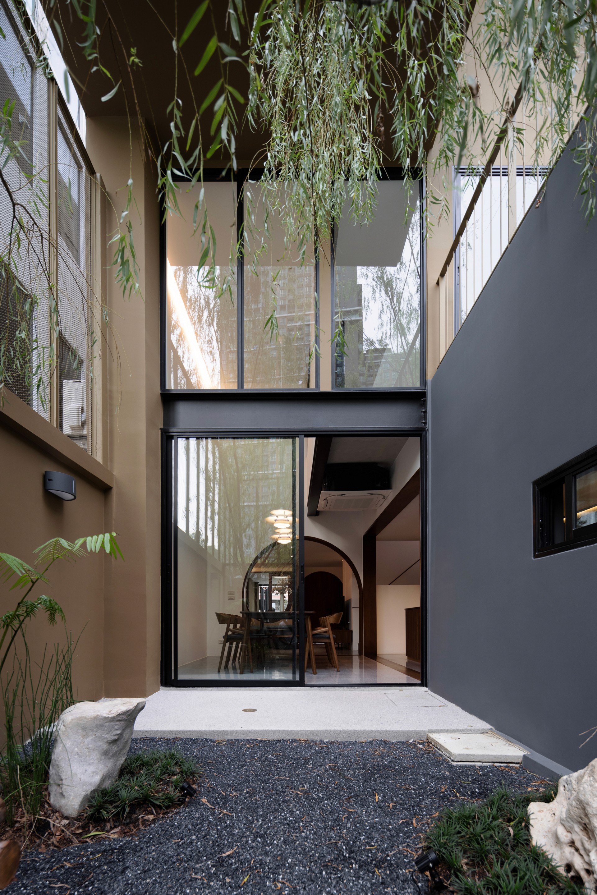 The existing building is a 120 square meters town house situated in an old village project. The context are rolls of townhouses facing each other with a small park-like space in the middle being utilized as parking space and exercise ground.