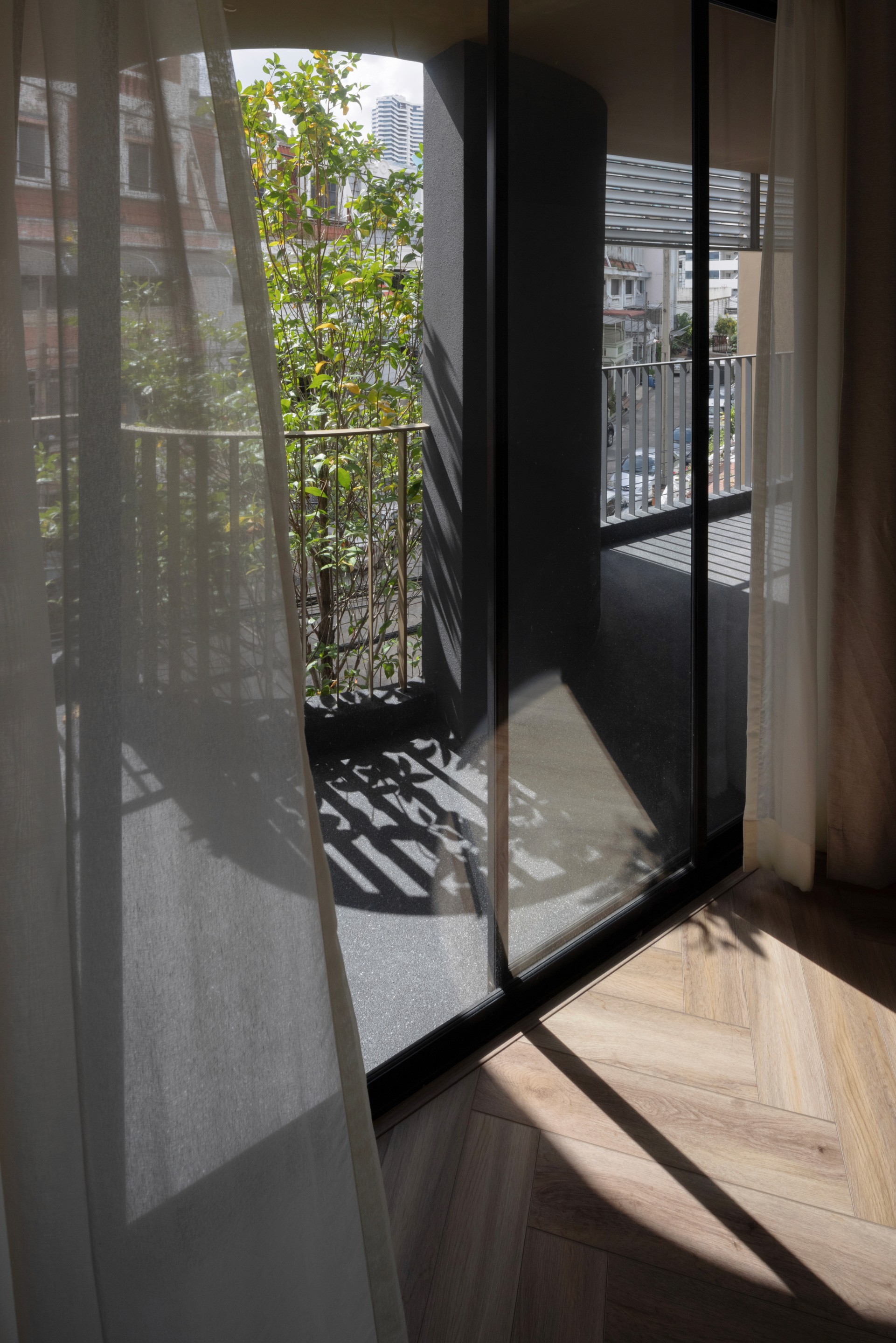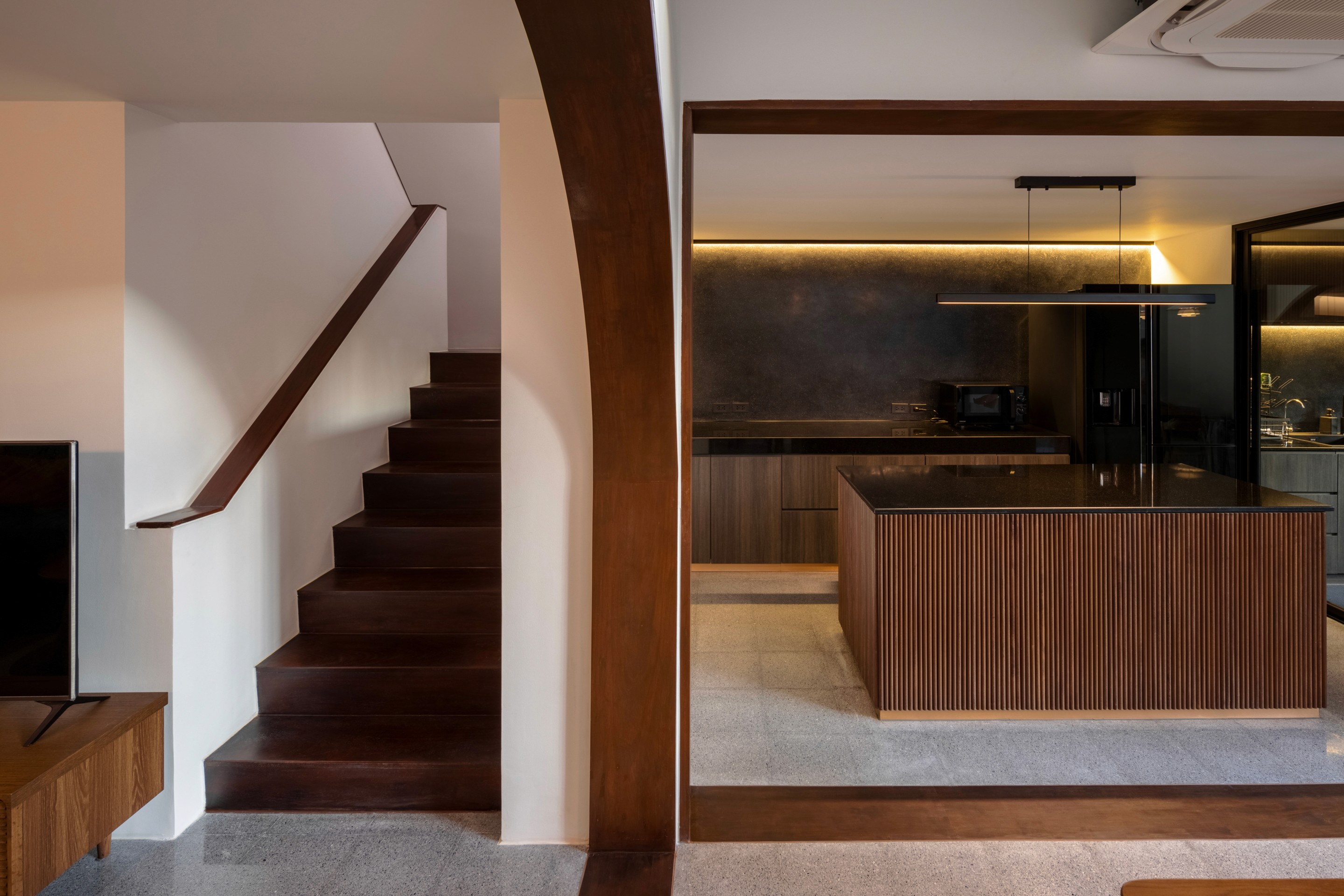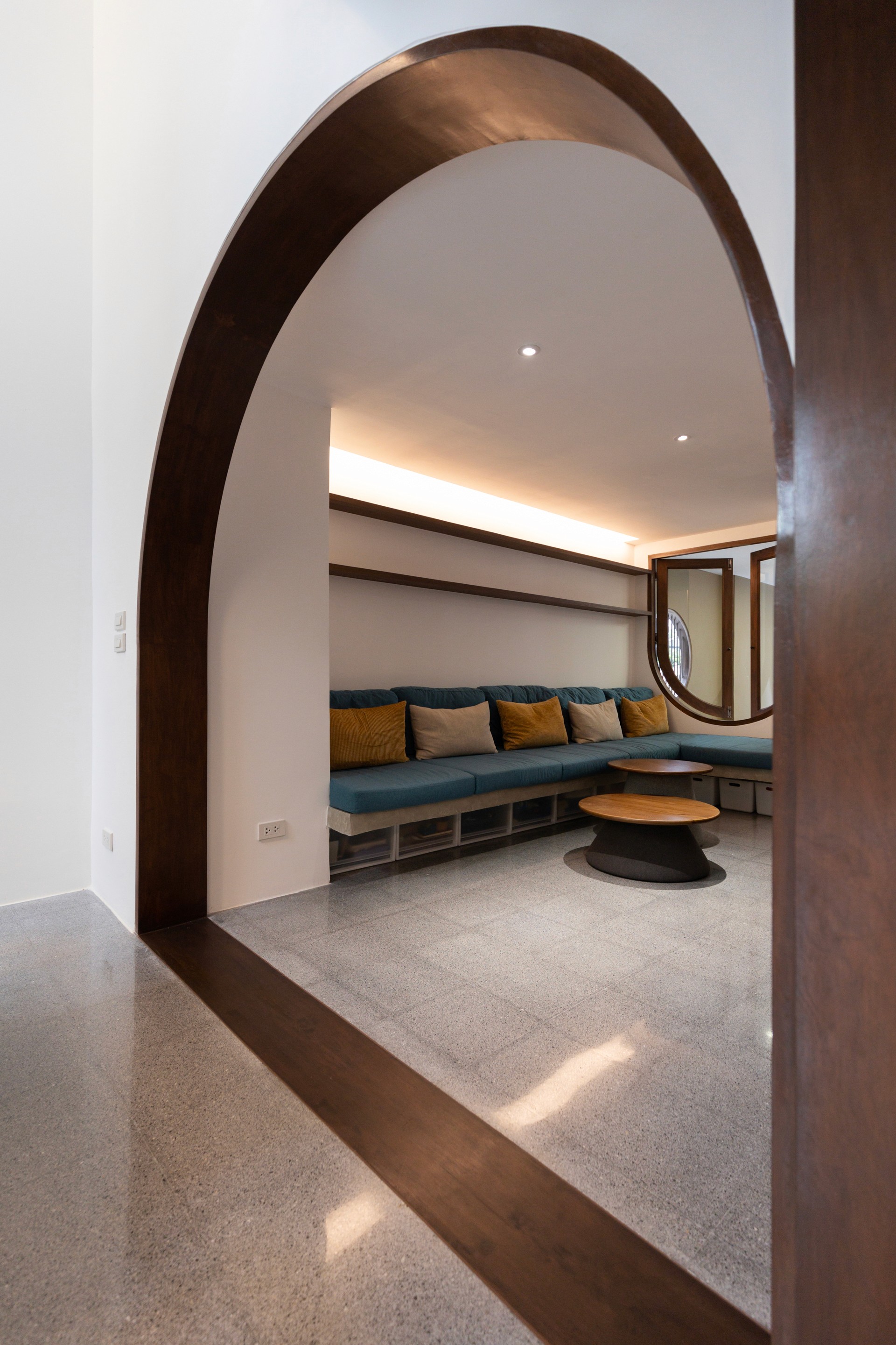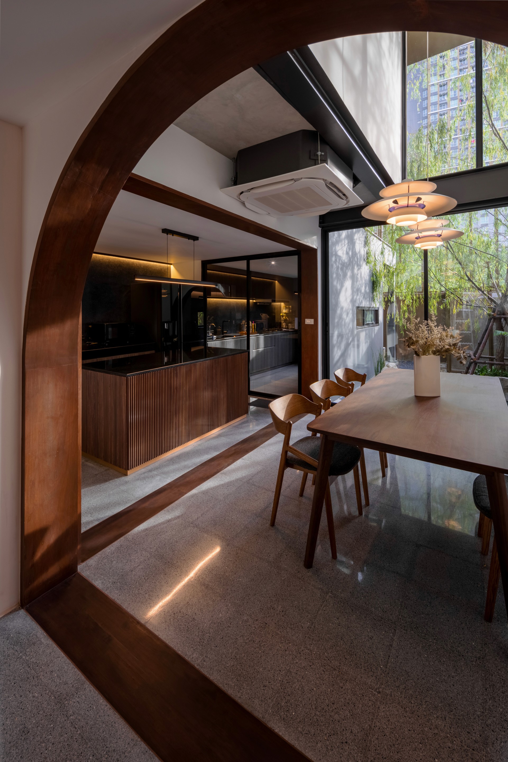 The existing building is a 120 square meters town house situated in an old village project. The context are rolls of townhouses facing each other with a small park-like space in the middle being utilized as parking space and exercise ground.