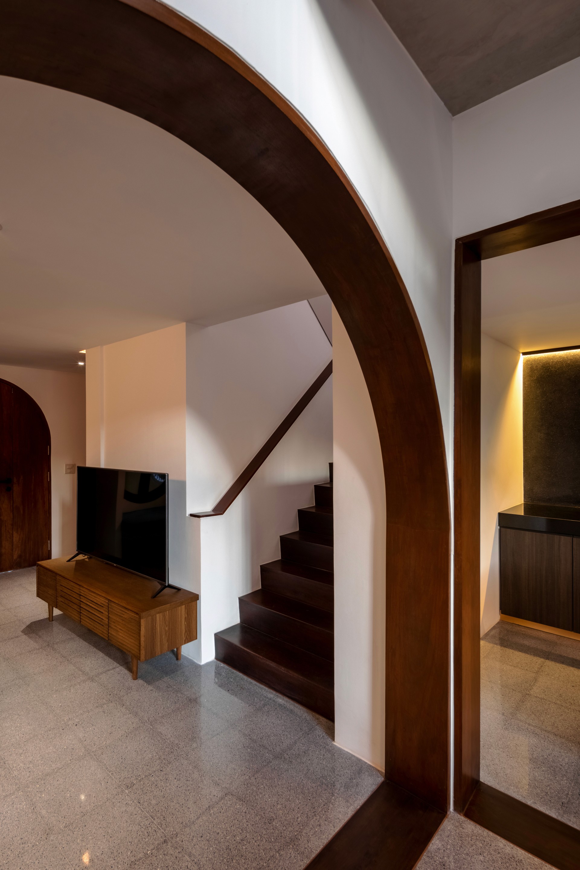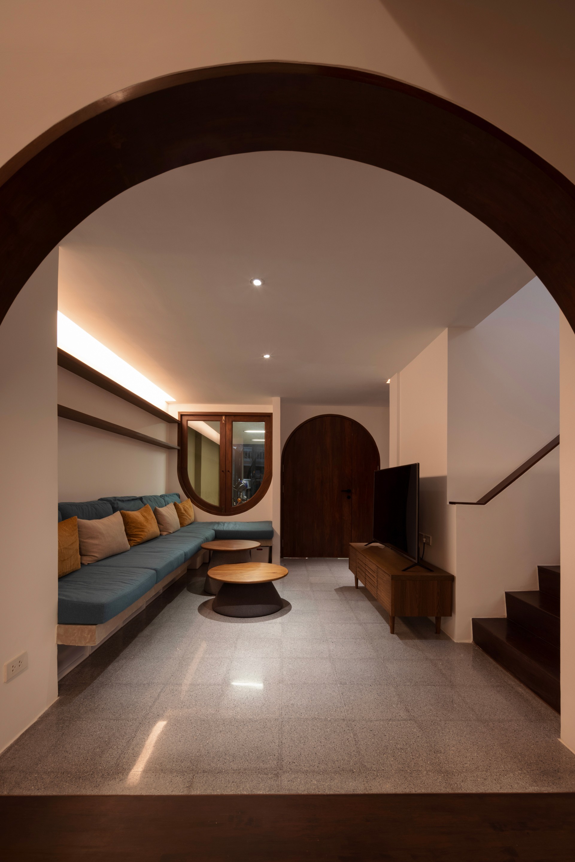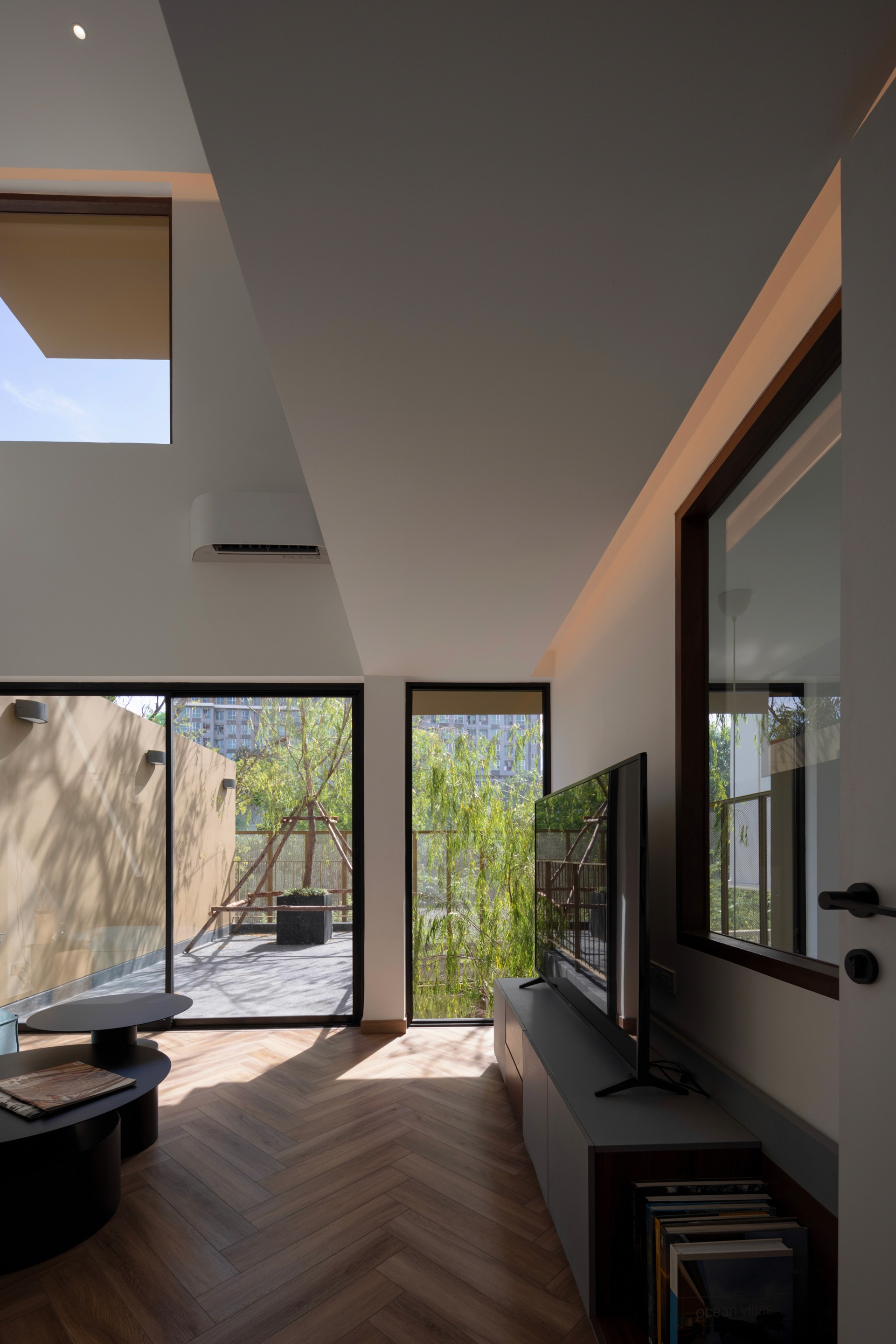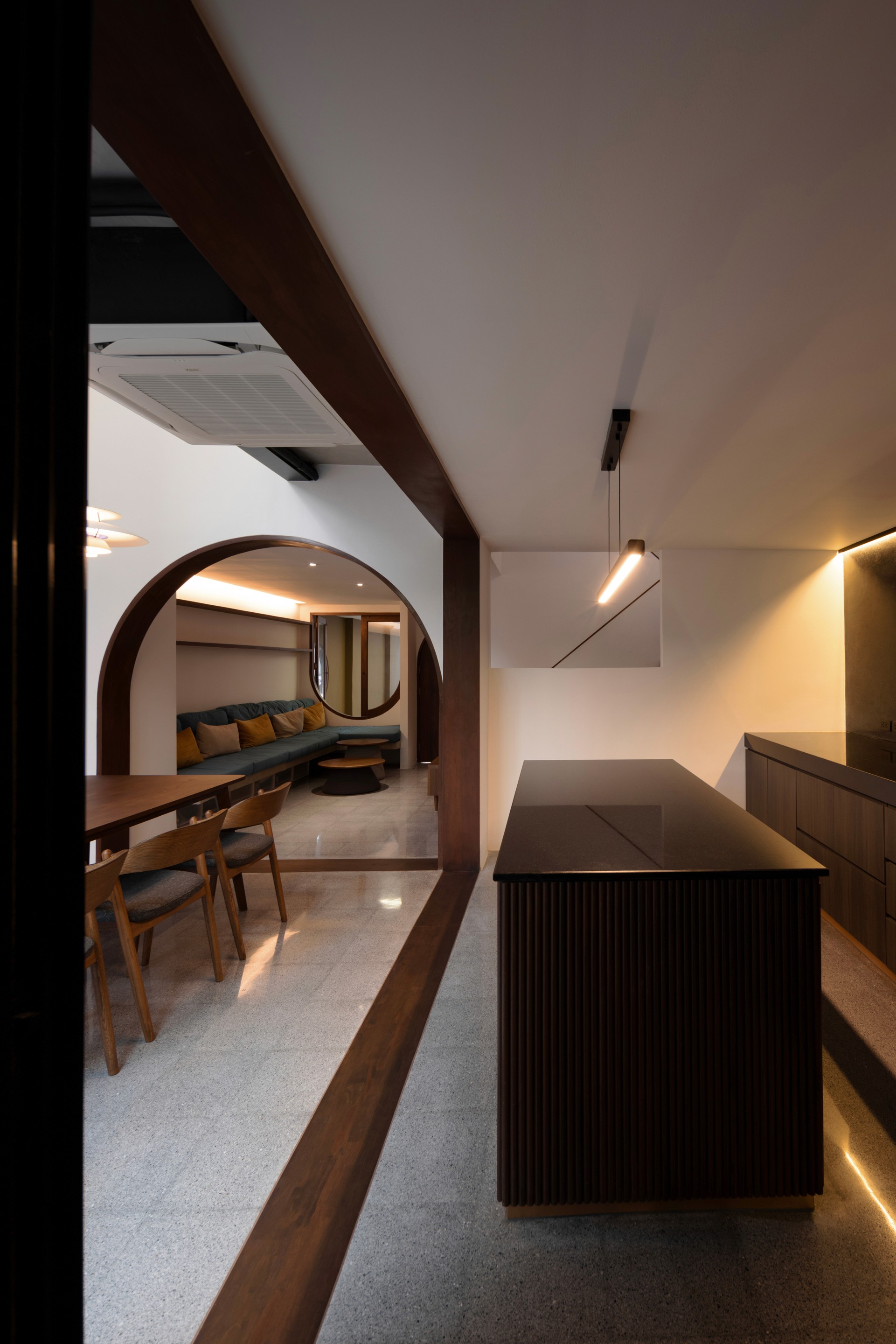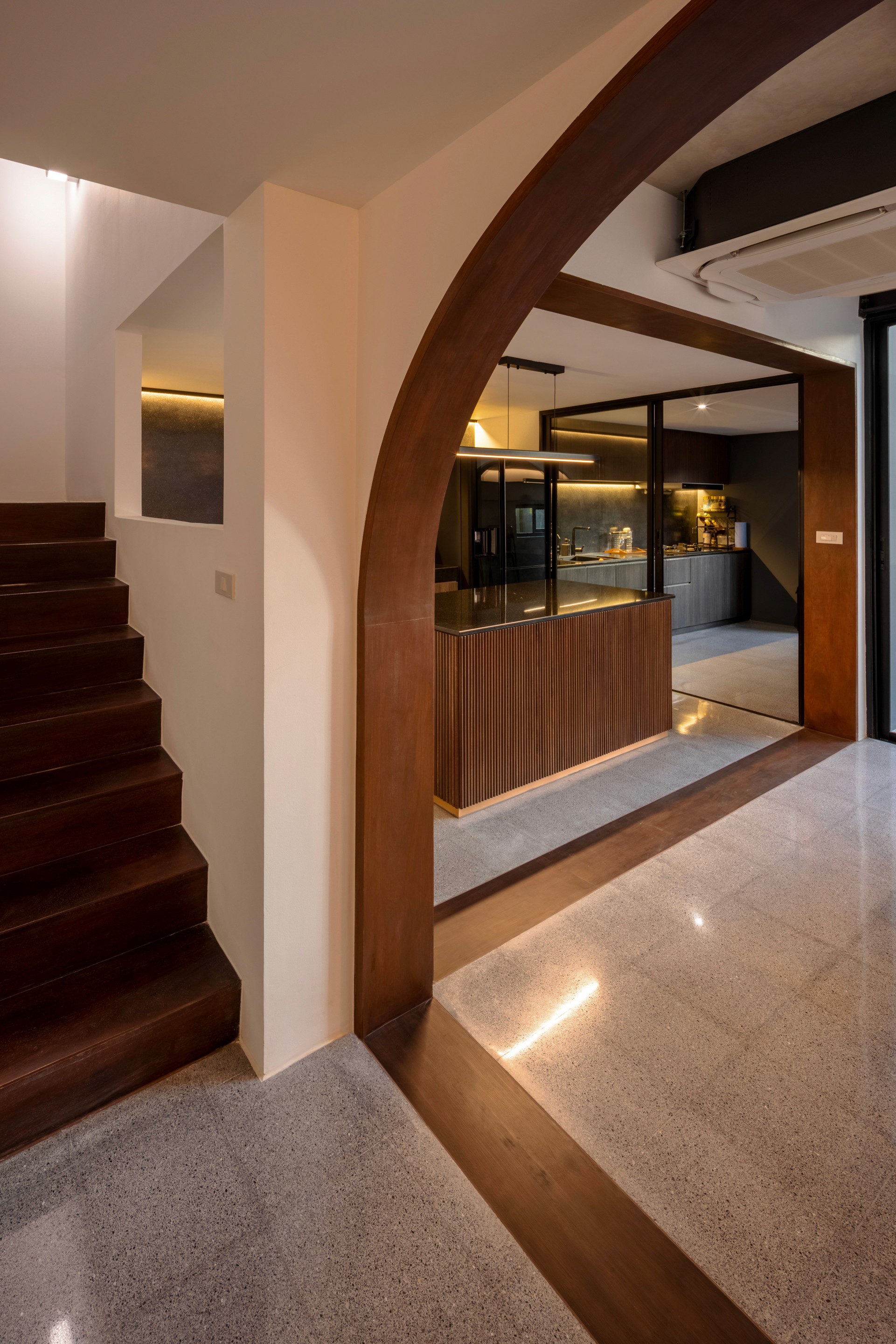 The existing building is a 120 square meters town house situated in an old village project. The context are rolls of townhouses facing each other with a small park-like space in the middle being utilized as parking space and exercise ground.